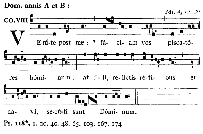 Antífona: Venid en pos de mí, y os haré pescadores de hombres. Y ellos, dejando al instante las redes y la barca, le siguieron.
