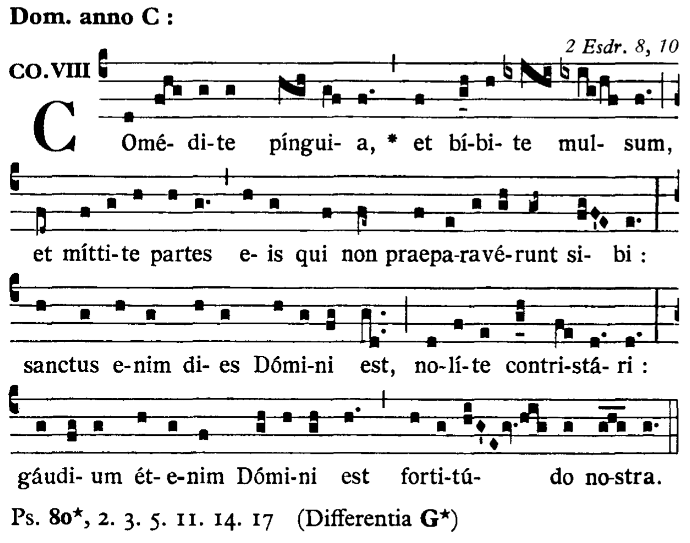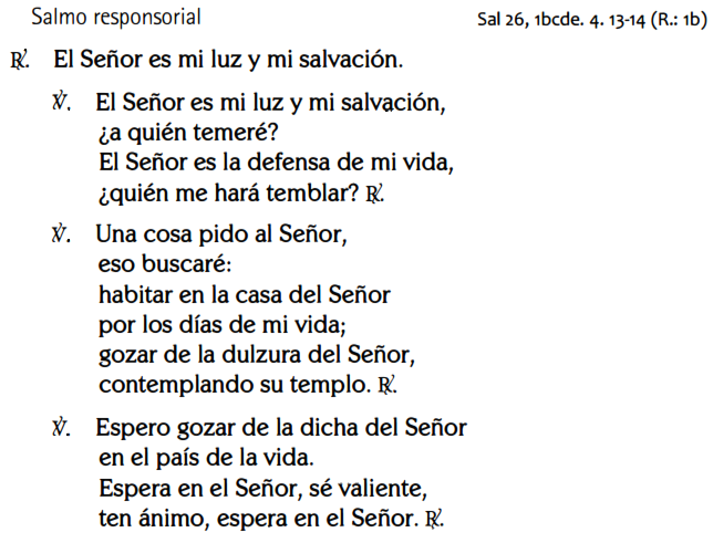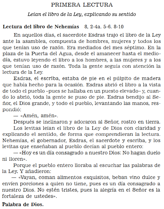 Antífona: Comed manjares exquisitos y bebed vino dulce, enviad raciones a los que no tienen nada preparado, porque es día sagrado para el Señor; no estéis tristes, porque la alegría del Señor es vuestra fuerza.