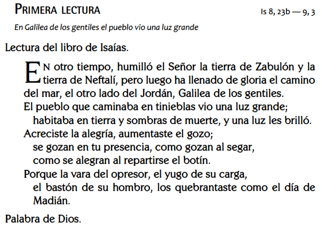 Salmodia: (Aquí se utilizarían los versículos 1, 4, 5, 6, 7, 8, 9, 10 y 12 del Salmo 96)