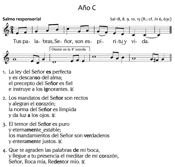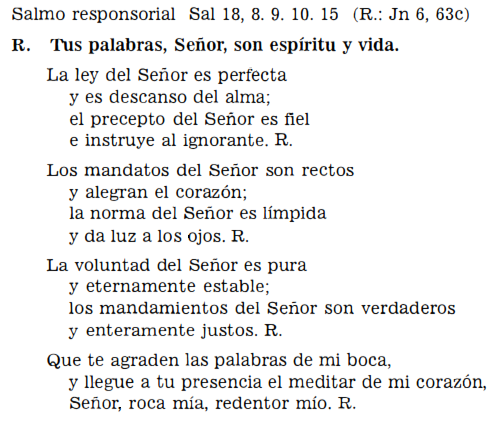 Salmodia: Los cielos proclaman la gloria de Dios, el firmamento anuncia la obra de sus manos.